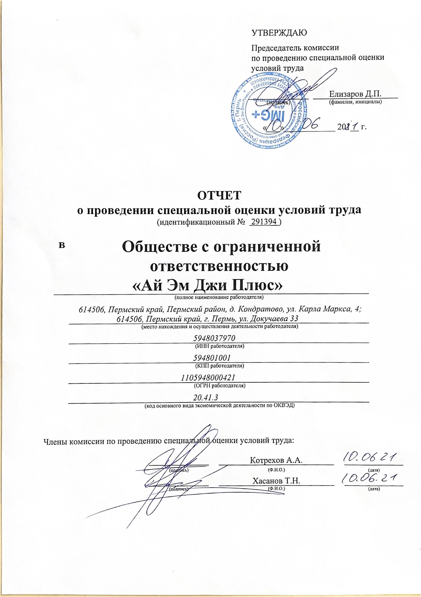 Процедура специальной оценки условий труда на рабочих местах ООО "Ай Эм Джи Плюс" стартовала в феврале 2021 г., далее течение трёх месяцев аккредитованная организация идентифицировала производственные факторы, после провели измерения факторов.